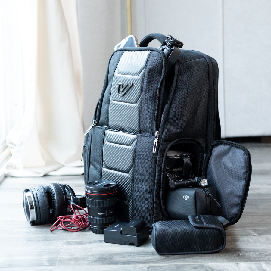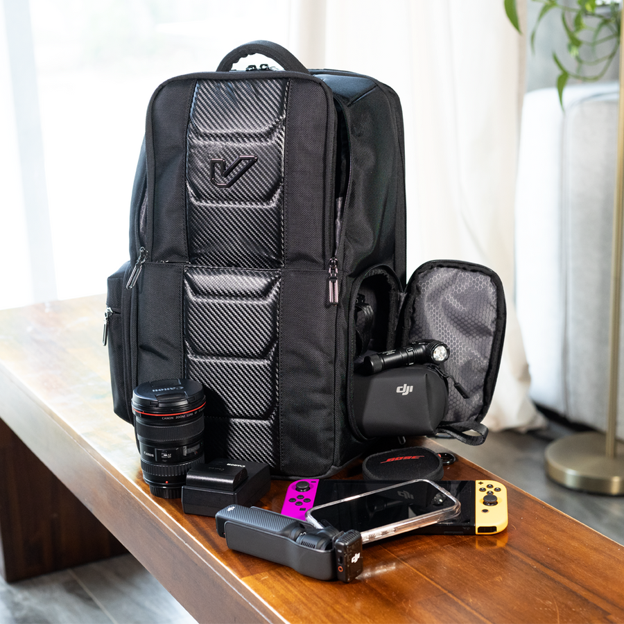 Keep essentials like your headphones and sunglasses ready to grab in the overhead clip, while having a spacious bin for a DSLR camera, hard drives and other tech gear you want quick access to.